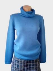 Rolák je rovného, volného střihu, hladce pletený, s klasickými rukávy.