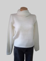Rolák je rovného, volného střihu, hladce pletený, s klasickými rukávy.